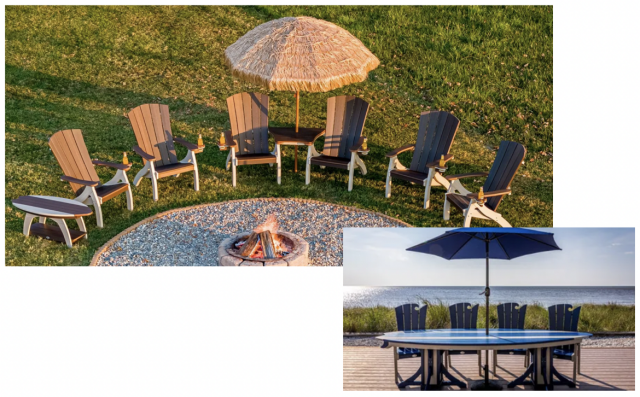 Handcrafted outdoor poly furniture built with high-quality Tangent materials. Made in the USA by Amish craftsmen out of recycled materials, this environmentally and earth-friendly poly furniture won't rot, splinter, fade or crack. Choose from several collections including Adirondack, Contemporary, and Coastal. Home of the Surfboard Table.